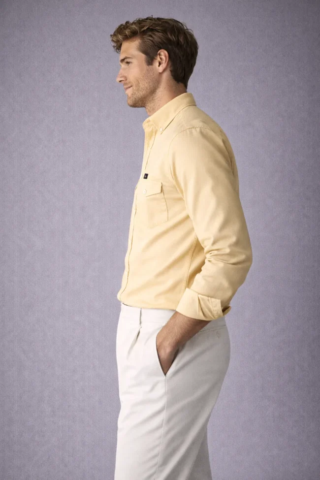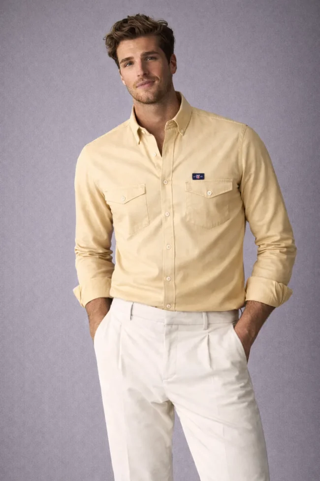 Upgrade your wardrobe with this premium beige full sleeve shirt featuring double flap chest pockets and a modern slim fit design. Perfect for office and smart casual wear.