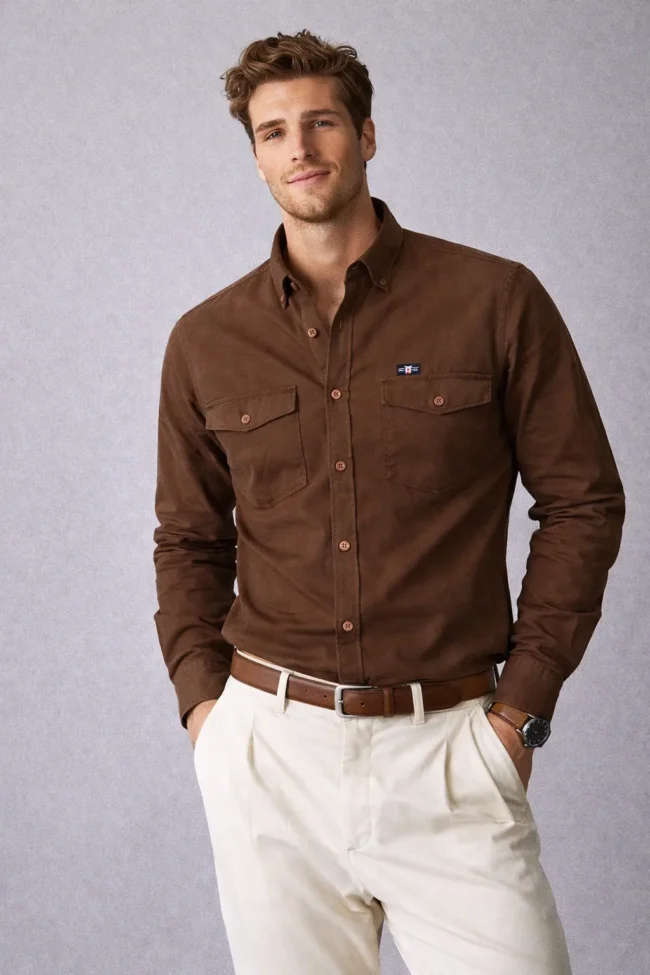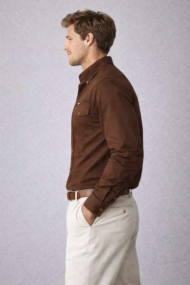 Upgrade your everyday style with this sophisticated Brown Full Sleeve Men’s Shirt. Designed with double flap chest pockets and a sharp slim fit structure, this shirt blends rugged elegance with modern fashion.