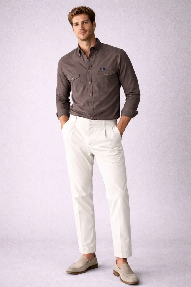 Crafted from high-quality breathable cotton blend fabric, it ensures long-lasting comfort while maintaining a sharp and structured appearance. The rich taupe brown tone adds depth and elegance, making it ideal for office meetings, formal gatherings, smart casual outings, and evening occasions.