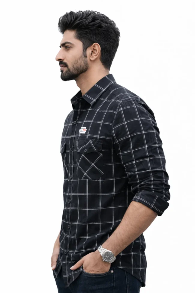 Upgrade your wardrobe with this Men’s Black Checked Casual Shirt, designed for a stylish and modern look. Featuring a premium grid check pattern with dual pocket flap detailing, this shirt is perfect for men who want comfort with fashion.