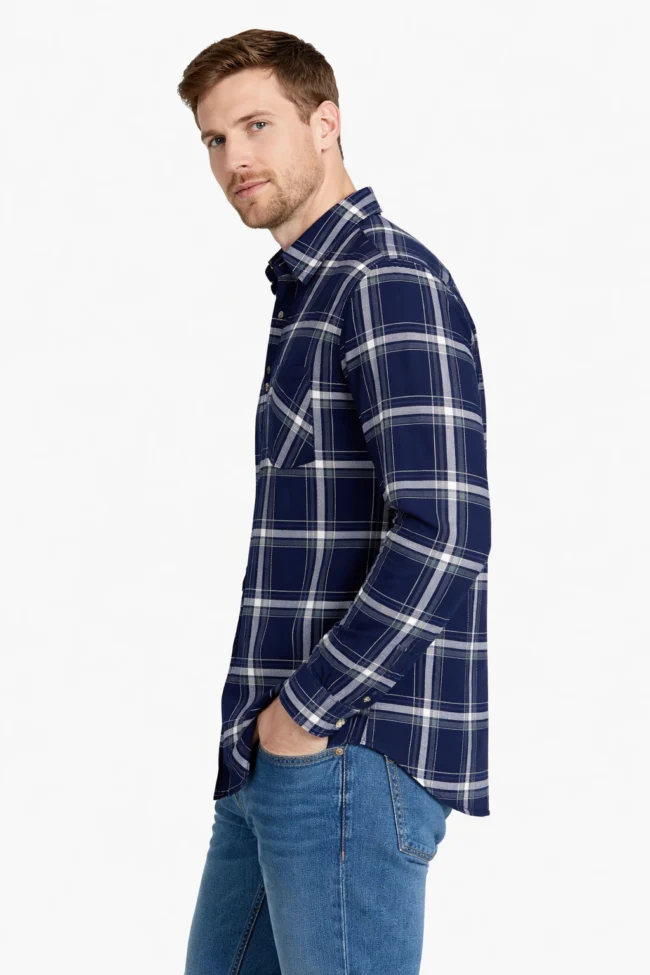 Upgrade your wardrobe with this men’s navy blue checked casual shirt, designed for a smart and comfortable everyday look. Made from premium breathable cotton fabric, this shirt features a stylish plaid check pattern, full sleeves, and a regular fit that suits all body types.