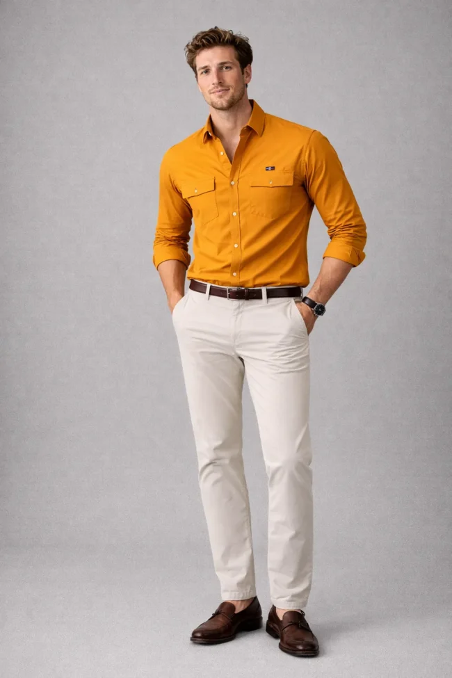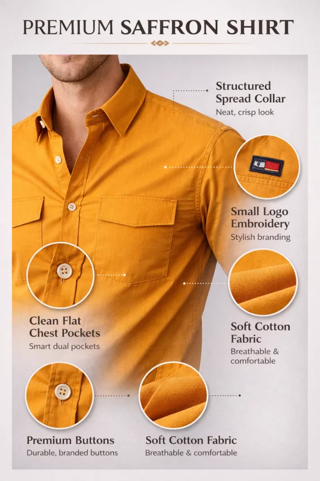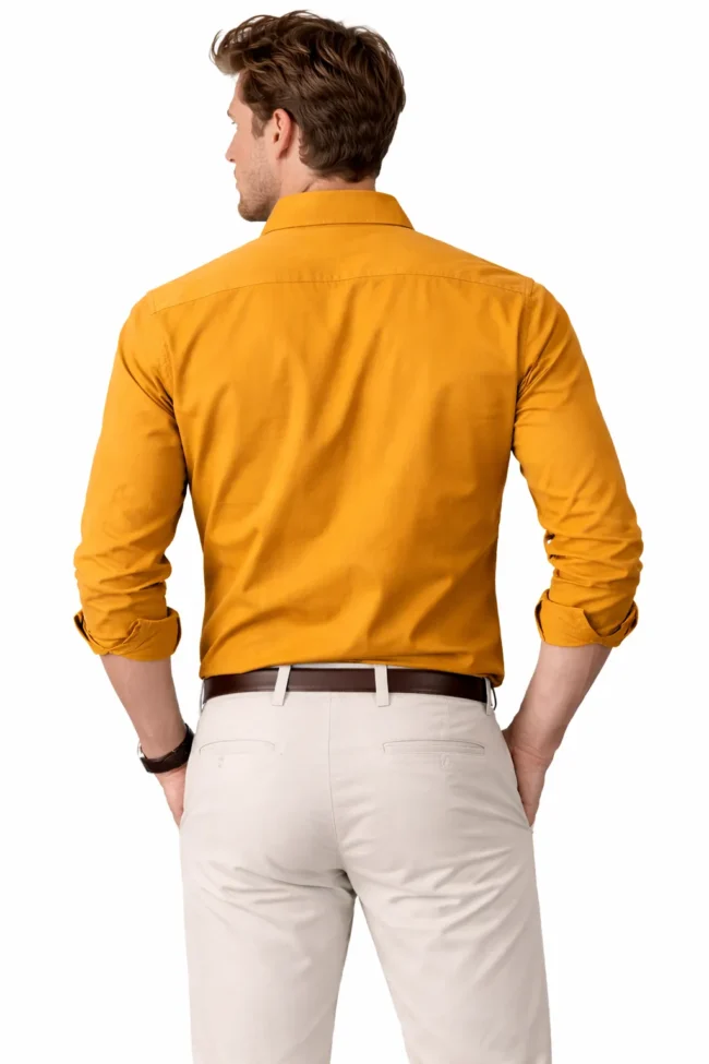 Crafted from high-quality breathable cotton fabric, it ensures all-day comfort while maintaining a sharp and structured look. The rich mustard tone makes it perfect for festive wear, office meetings, date nights, and smart casual occasions.