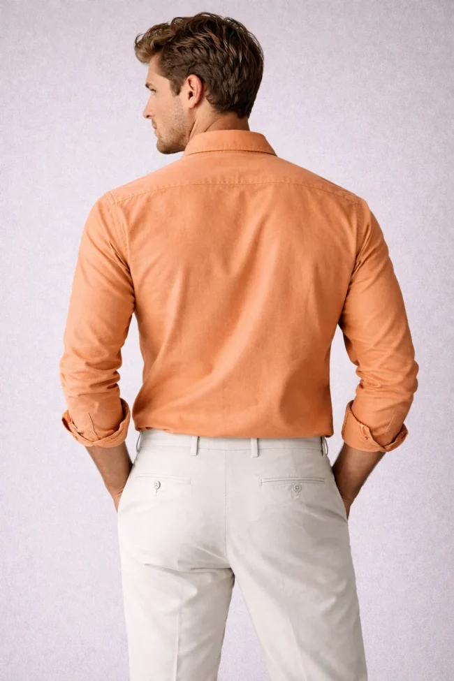 Stand out in style with this premium rust orange full sleeve shirt featuring double flap chest pockets and a sharp slim fit design .Sizes Available S to XL